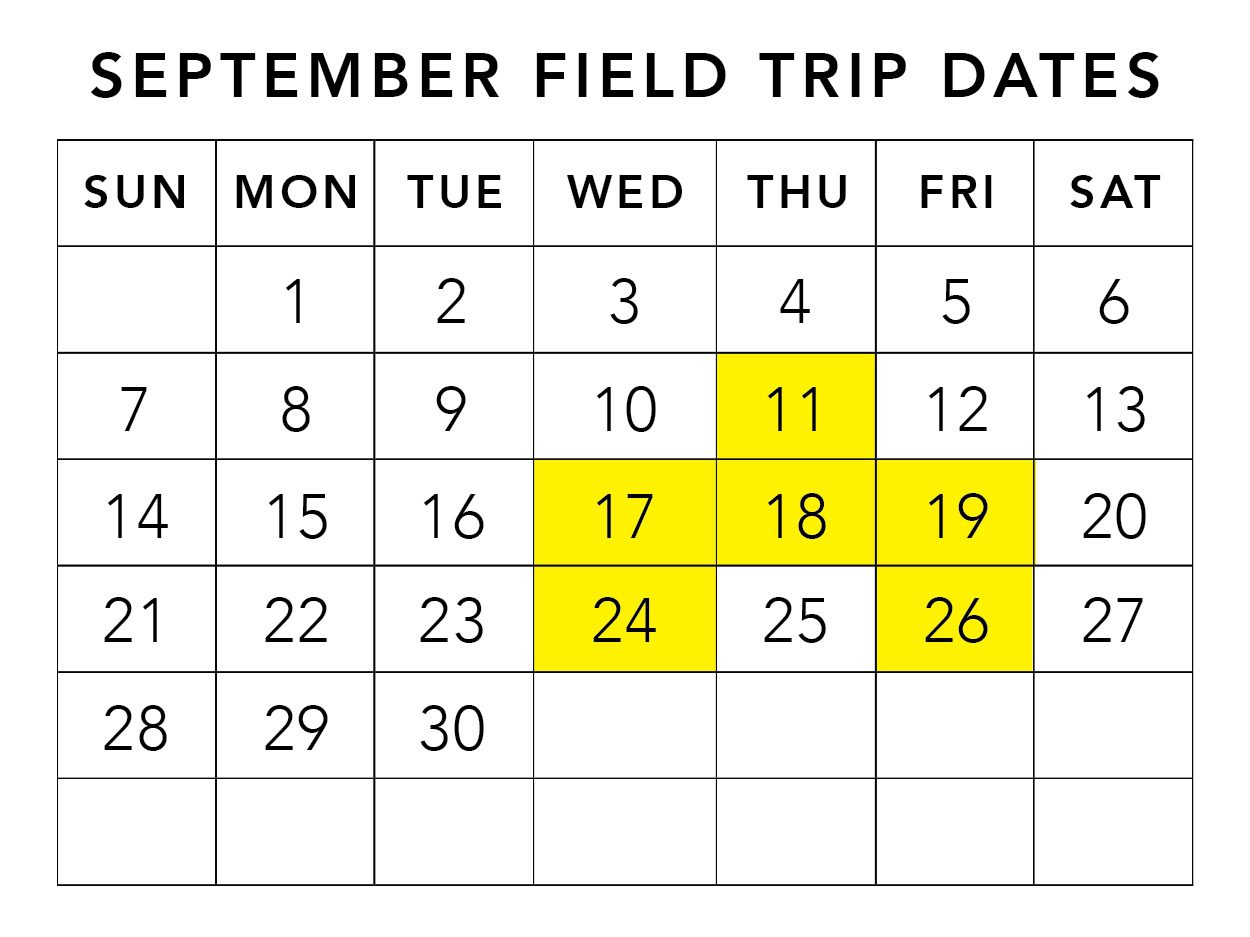 Field trips are available on the highlighted dates below. Call (330) 264-0264 to confirm availability and schedule your field trip!